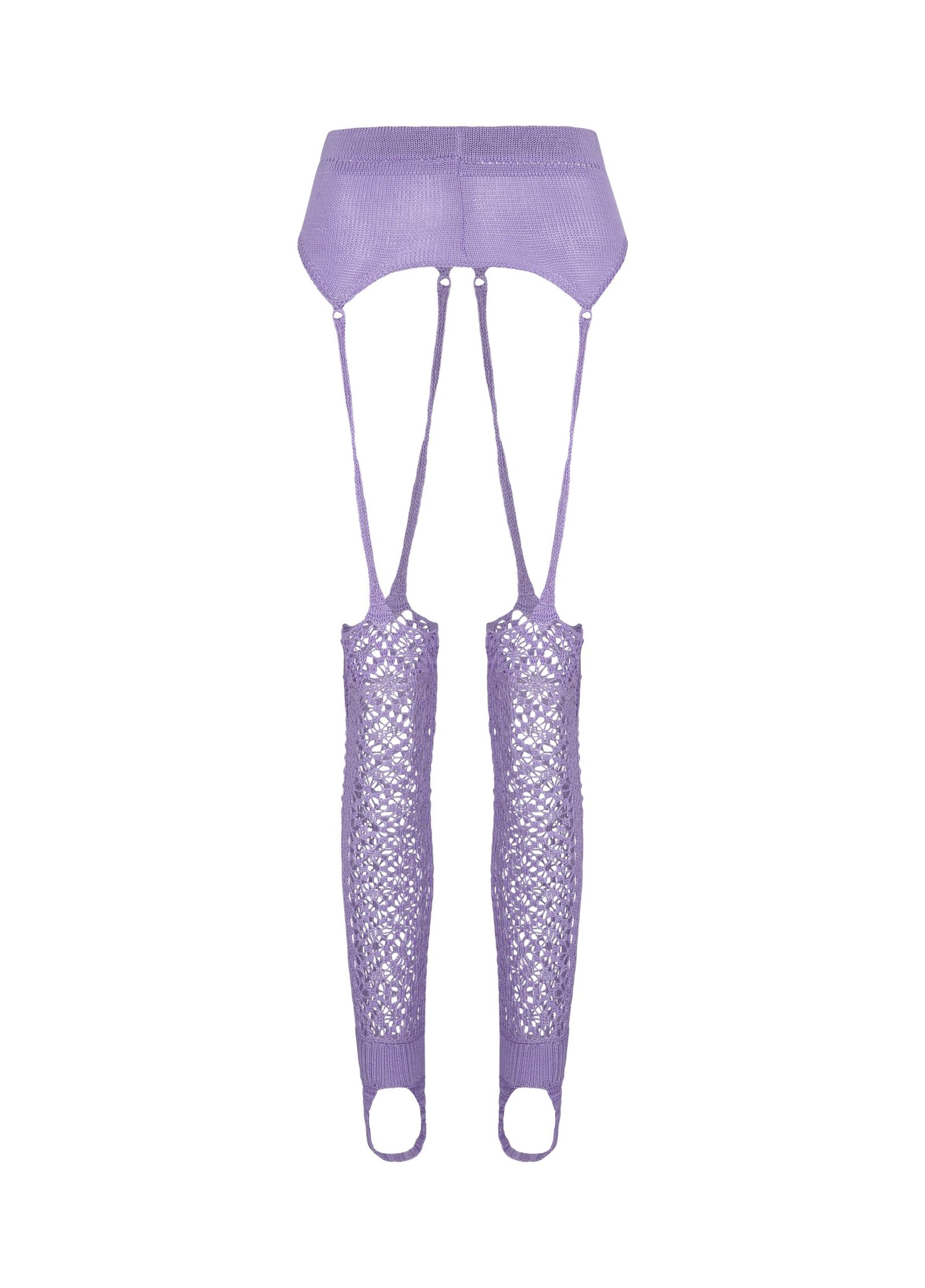 The Kisca knitted stockings stand as a testament to the collection’s vision, meticulously crafted with a semi-artisanal machine. Their distinctive weavings, emblematic of the brand.