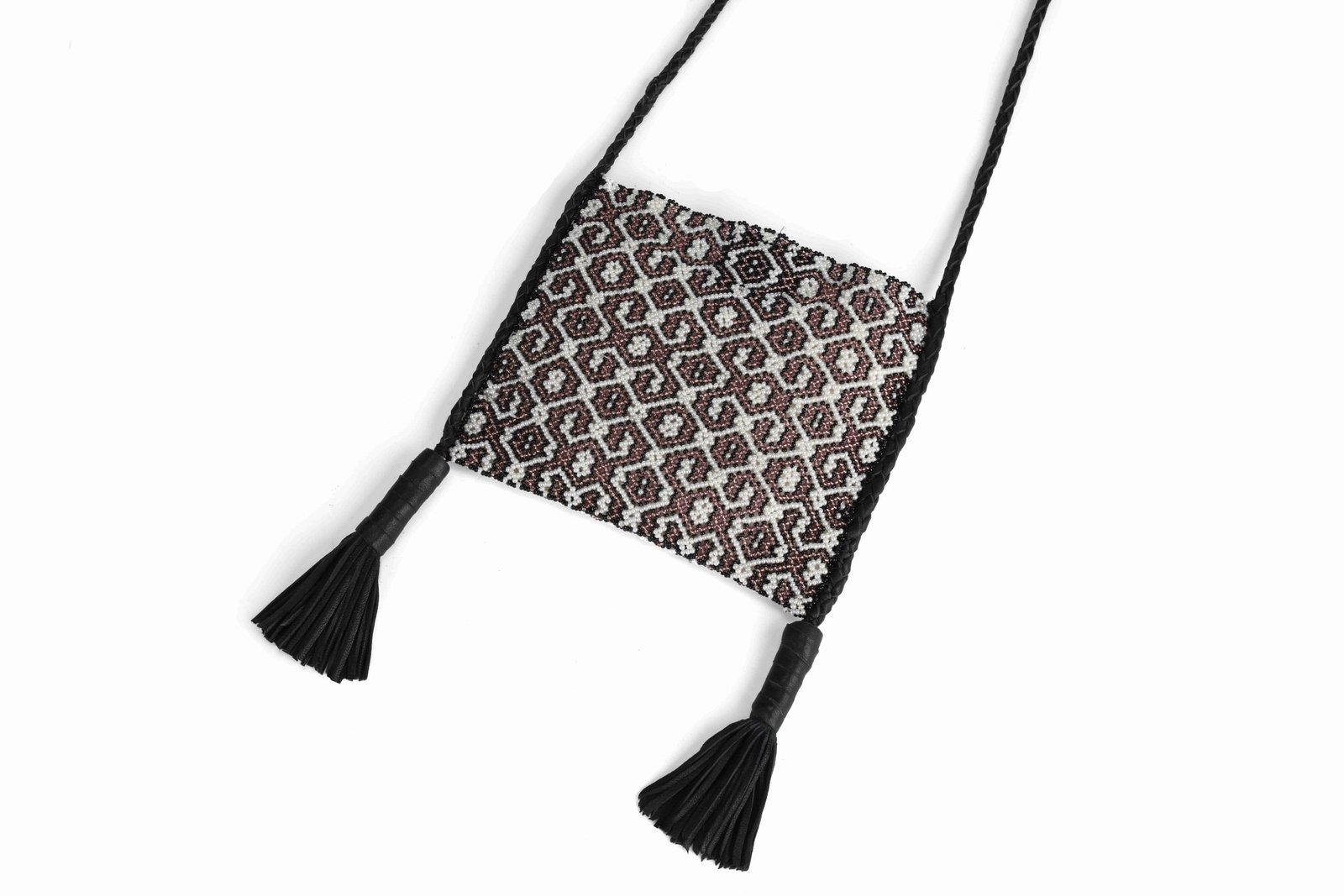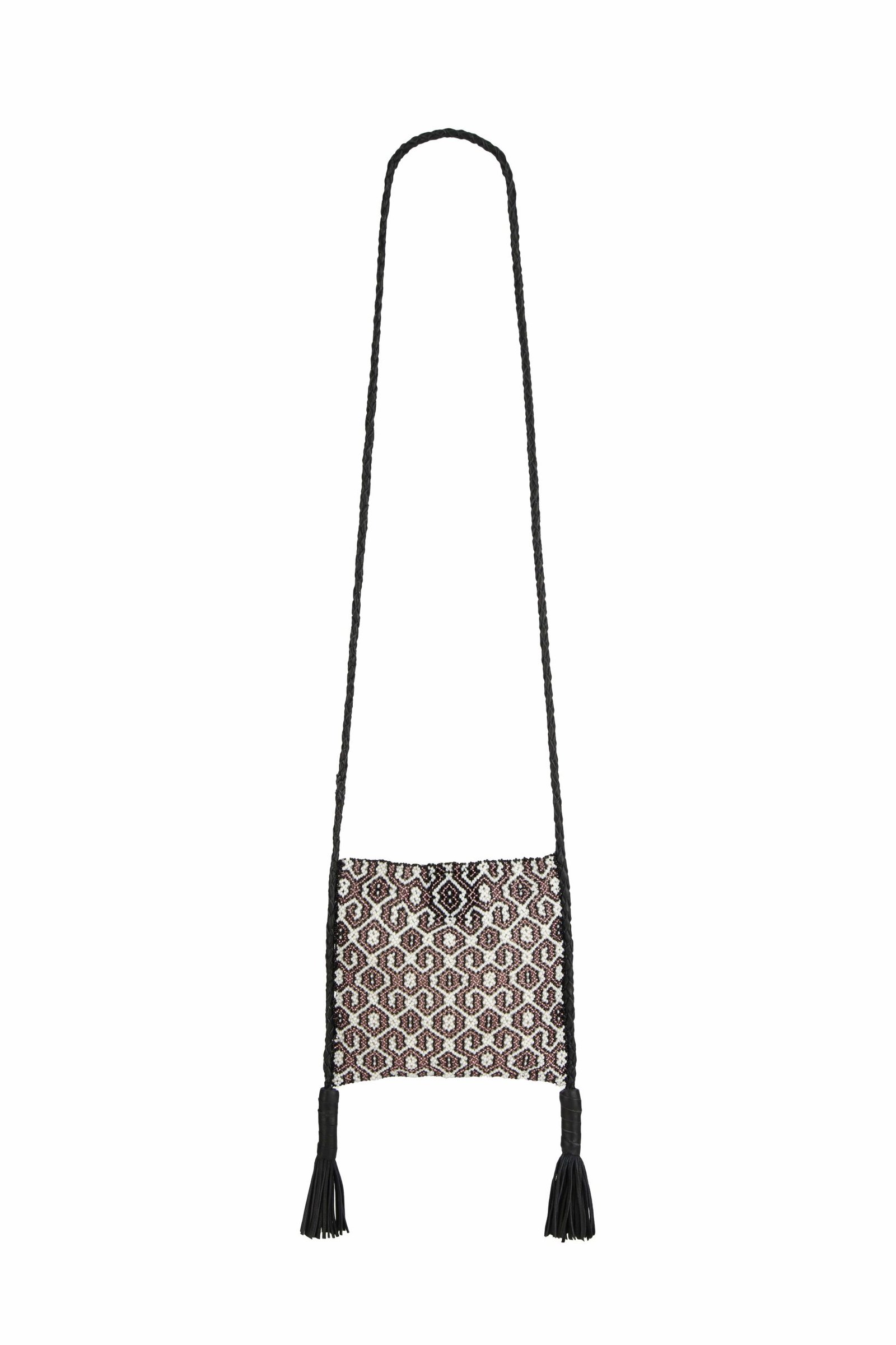The Naira bag is a celebration of the art of decoration, crafted entirely from high-quality beads arranged in traditional patterns from Peru’s Amazon region. This piece transforms intricate beadwork into a stunning accessory that evokes the elegance of fine jewelry.