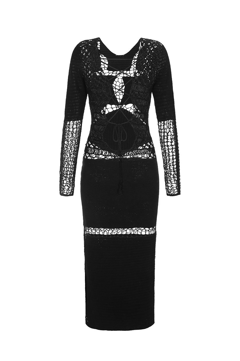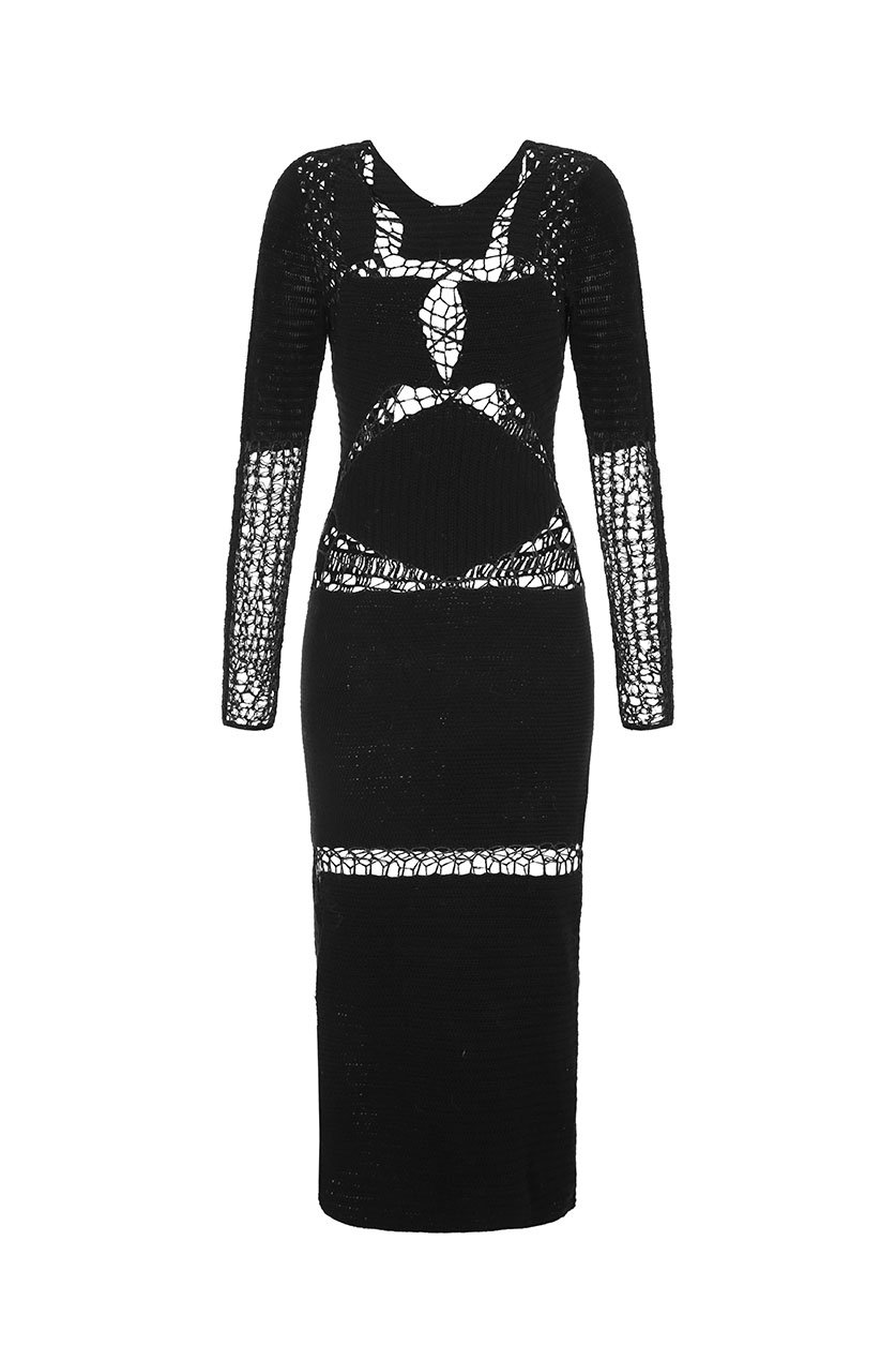 The Quillu model stands out for its intricate knit design developed by the brand. It is a fitted midi dress whose cut-outs are structured to flatteringly embrace the body, making it a versatile and statement piece.