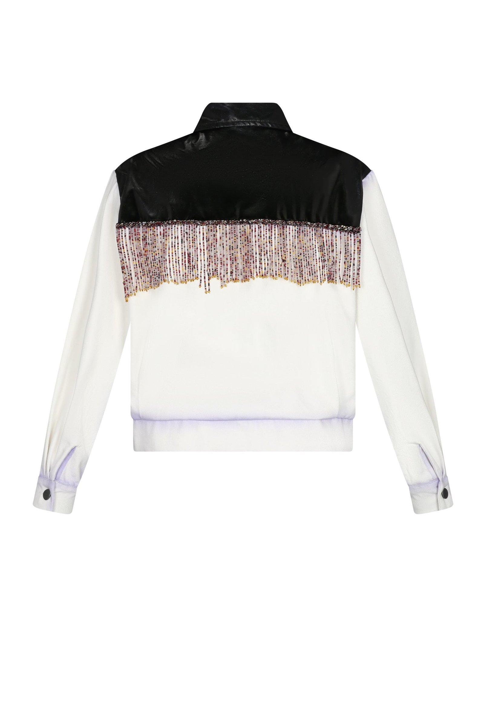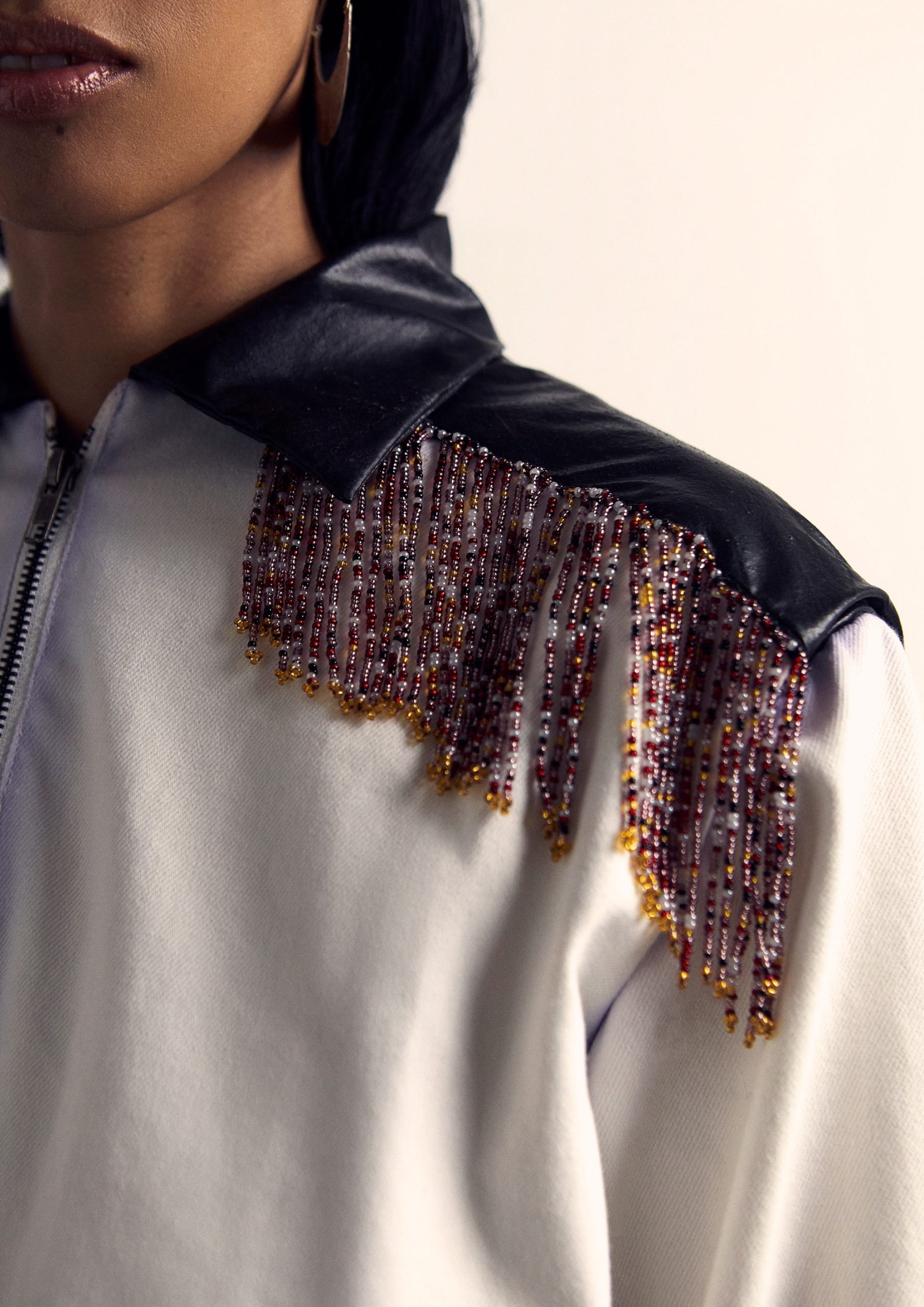 The Warmi Jacket weaves together storytelling and craftsmanship. Made from premium Peruvian cotton, it features a yoke and collar crafted from Caucho Salvaje, a sustainable leather alternative born from the brand’s innovative research. Artisanal beadwork, created by a Peruvian Amazonian community, and delicate crystal glass fringe add refined details. The soft, airbrushed finish, achieved with eco-friendly dyes, enhances the artistic narrative. This jacket unites diverse processes and communities across Peru, blending tradition and technology in a piece that tells a story of heritage and innovation.